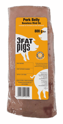 Pork Belly Boneless Skin On 800g Frozen 3 FAT PIGS