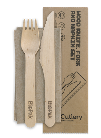Cutlery Knife/Fork/Napkin Set Wooden 100pk BIOPAK