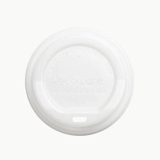 Lid Cup White 80mm EcoCup Bioplastic 50pk ECOWARE