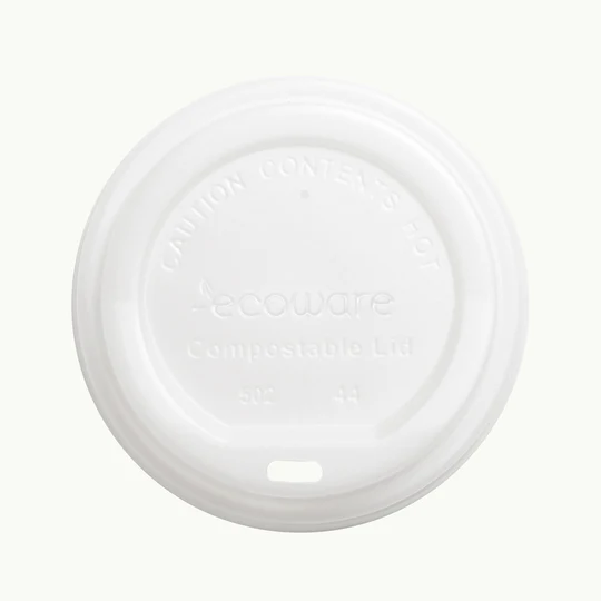 Lid Cup White 90mm EcoCup Bioplastic 50pk ECOWARE